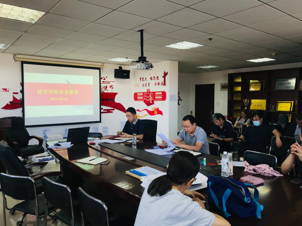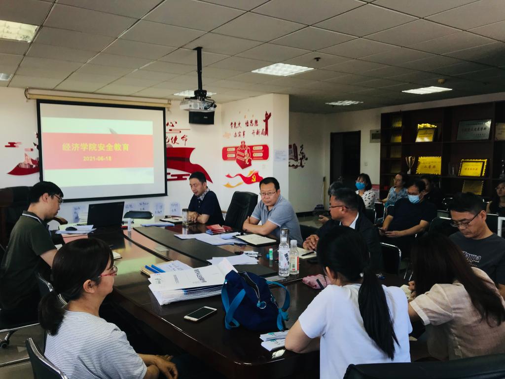 6月18日下午球盟会在综合楼806开展安全教育工作,全体教职工参会,李国柱书记主持会议。